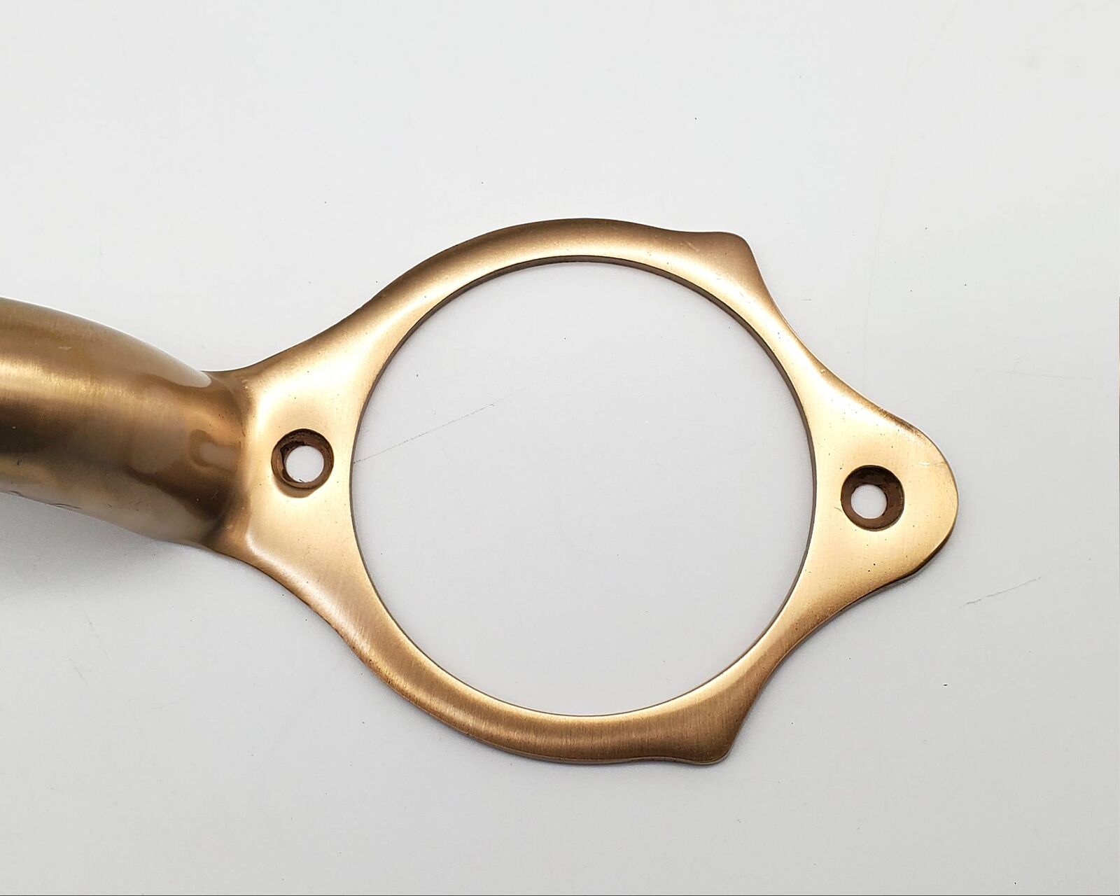 Polished brass curved grip handle for use with existing knob for handle set lock. Available in several finishes.