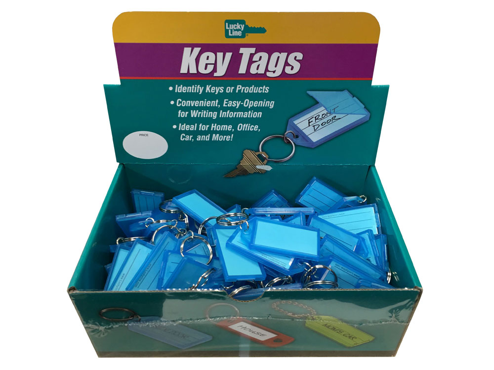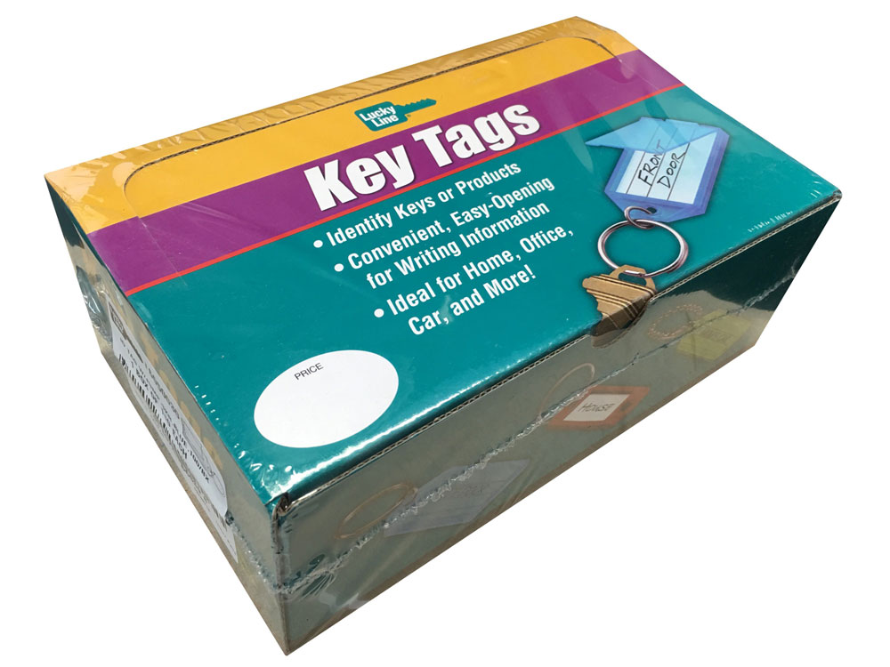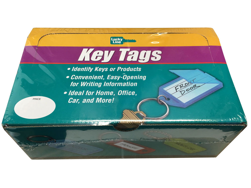 Lucky Line 6050010 Key Tag with Split Ring, Polypropylene, 100/Display Box, Clear, Open/close flap over paper insert for identification with keys attached.