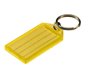 Key Tag with Split Ring, Polypropylene, 10/pack, Yellow