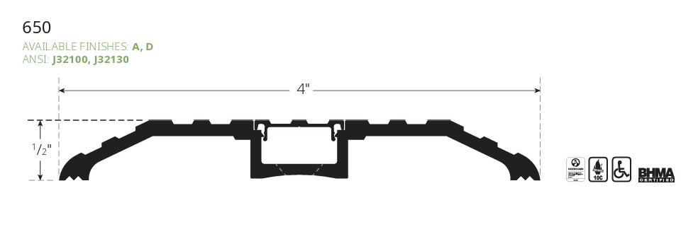 650A Concealed Fastener Threshold, 4" x 1/2" x Length, Pemko