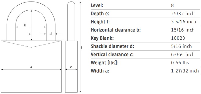 Abus Rekeyable Brass Padlock, 1-27/32" Width, Security Level 8