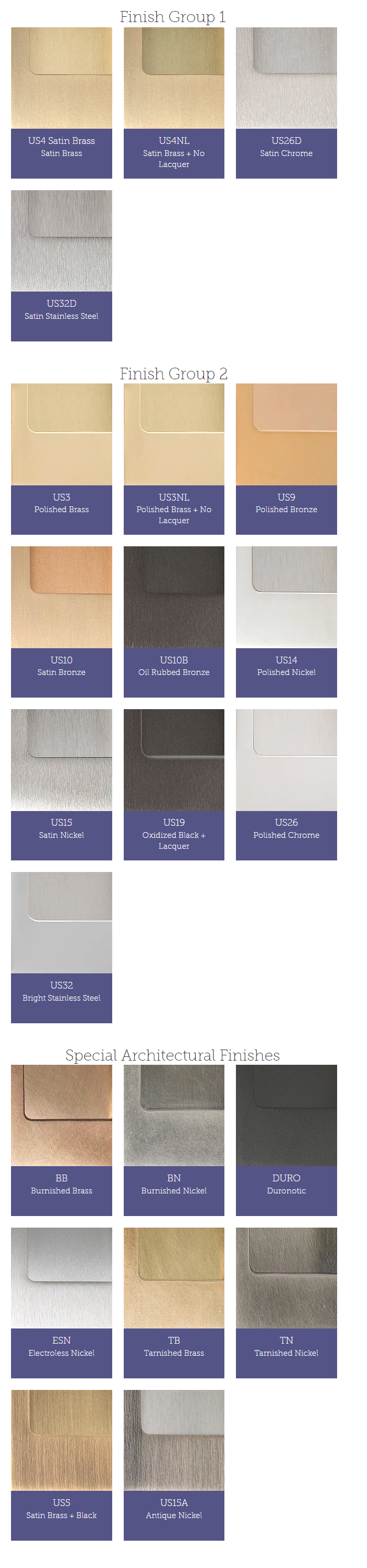 Available Finishes