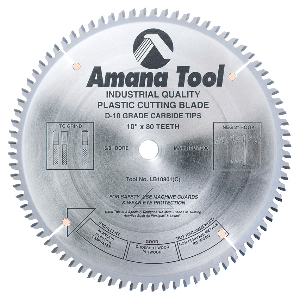 Amana Tool AALB10801 Plastic Non Melt Plexi-Glass Saw Blade, 10" Diameter