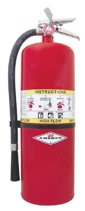 HIGH FLOW portable fire extinguishers for applications where discharge rates exceeding one pound per second are required as specified in NFPA 10. These extinguishers utilize the same hardware and are manufactured to the same U.L. specifications as Amerex compliance rated products.