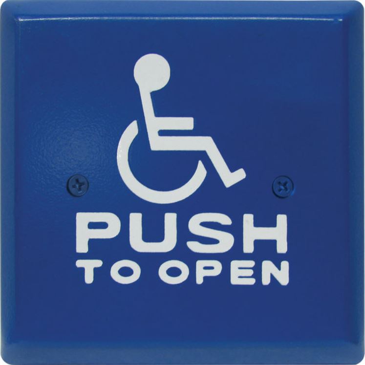 Camden CM-46CBK-4 Push Plate Switch with Kinetic Wireless Transmitter, WHEELCHAIR Symbol and "PUSH TO OPEN" Text