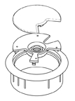 This style grommet has three pieces; grommet cap, rotary cap and hole liner