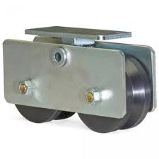 The Doorking 1201-012 is a 4" tandem UHMW V-Wheel assembly with a maximum weight of 1500 lb. DKS DoorKing offers a variety of V-Wheels and V-Wheel assemblies used in slide gate applications that utilize an inverted "V" type track. The weight and usage of the gate is critical in determining the size and type of V-Wheel that is right for your gate. UHMW wheels are generally used for lighter gates while steel wheels are used for heavy gates. For very heavy gates, the tandem wheel assemblies are ideal and provide a long service life by spreading the weight of the gate across a larger area than a standard single wheel - much like the tandem wheels on airliners spread their weight across many wheels. When in doubt, it is always best to use a heavier-duty wheel.