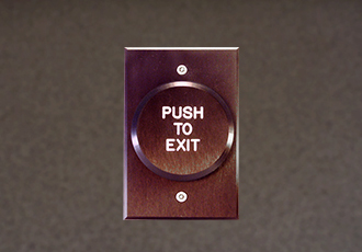 Dortronics W5286-ETXE1 5286 Series Single Gang Push Plate Switch, "PUSH TO EXIT" in Black Letters