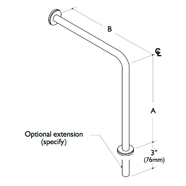 Elcoma 14-213330-KE 1-1/4" Diameter 33x30 Wall to Floor Grab Bar with Knurled Grip & Exposed Flanges - Chrome Plated Steel