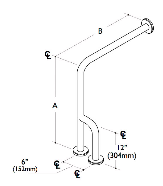 Elcoma 16-213330-SE 1-1/4" Diameter 33x30 Wall to Floor Grab Bar w/Outrigger with Smooth Grip & Exposed Flanges - Chrome Plated Steel - Left Handed