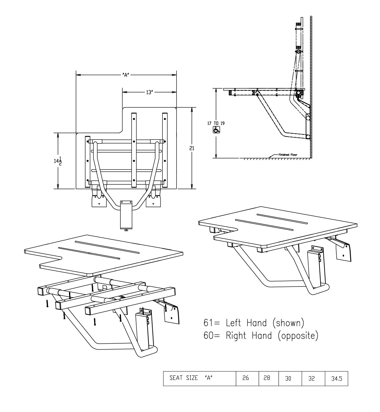 Adult Fold Down L-Shaped Shower Seat, Left Handed, Size: 28" x 21", Seat: Phenolic White