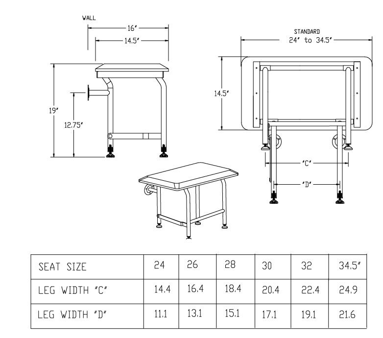Elcoma 62-PA2402WLEG-ORB 24" x 14.5" Elite Series Adult Fold Down Rectangle Shower Seat with Legs - Almond Padded Seat with Oil Rubbed Bronze Legs