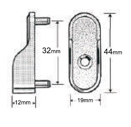 Two 1.26" (32mm) mounting pins, 1.26" (32mm) CC