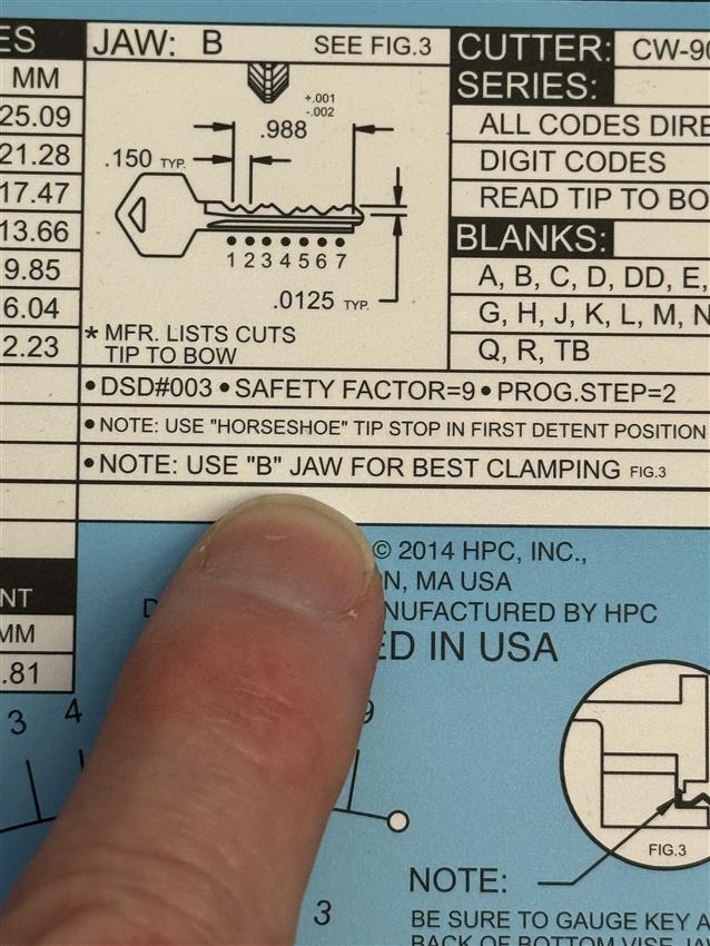 HPC Company C31 Code Card Kwikset Lrg Pin