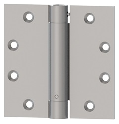 For automatic opening or closing of doors, single acting full mortise spring hinges are available in steel or in stainless steel with stainless steel components.