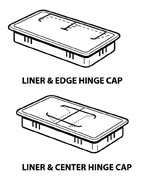 Two cap types are available: 1) Cap with two independent hinged tab on edge of cap and 2) Cap with two independent hinged tabs in middle of cap