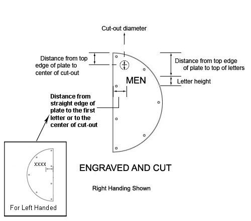Engraving: "MEN" - 3/4" letters with black enamel fill - specify location