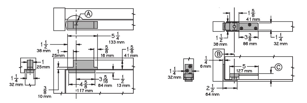 Vertical adjustment range 3/16", with positive locking