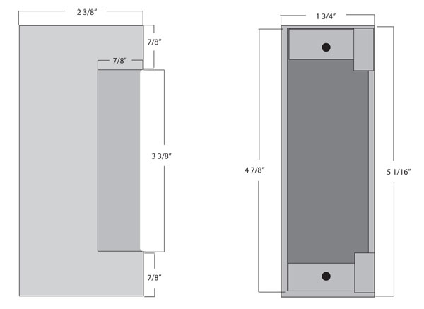 2-3/8" W x 5-1/16" H x 1-3/4" D