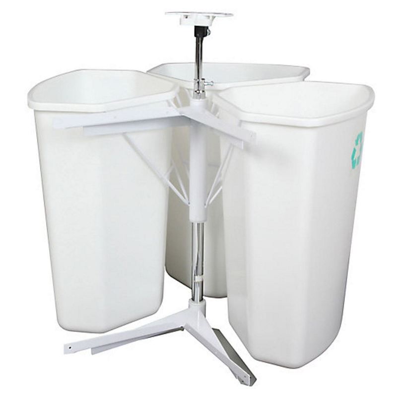 Knape & Vogt FYRRC28K-W Specialty Corner Recycling Center, Three Plastic Bin, 3 x 32 QT - White Color