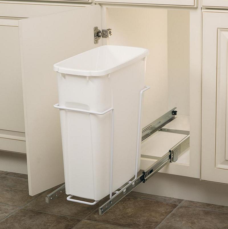Knape & Vogt FYSBM12-1-50WH Bottom Mount Trash Pull-Out, Single Plastic Bin, 50 QT - White Color