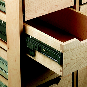 • Features: Factory-attached drawer release clips with quick disconnect drawer members. Hold-in feature to prevent bounce back. Positive in/out stops, retainer holds 3 bearings per inch of race for smooth and quiet motion. Progressive movement on ball bearings