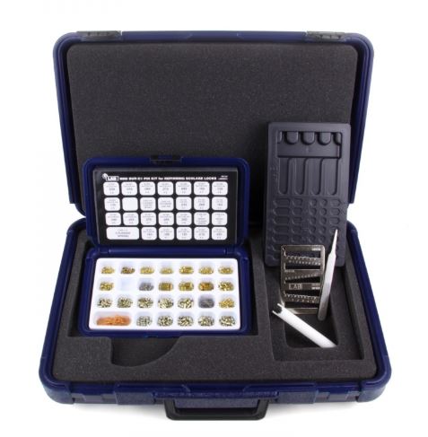 The LAB Starter Kit covers the needs of locksmith schools, trianing classes or seminars and those starting out in the industry. Tools are stored in a deep pocket under the pinning block. The kit includes a polyethylene case, mini pin kit, molded plastic pinning block, formed end tweezers, key gauge, and plug follower.