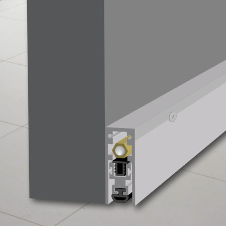 Designed to drop like a scissor, hinge side first then self-leveling to compensate for uneven floors