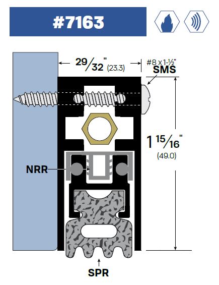 Legacy 7163-CA-SL-EA-FL-PULL 66" Surface Automatic Door Bottom with SPR insert for Sliding Doors, Electrical Actuator, Fire Label, Pull Option, Clear Anodized Aluminum