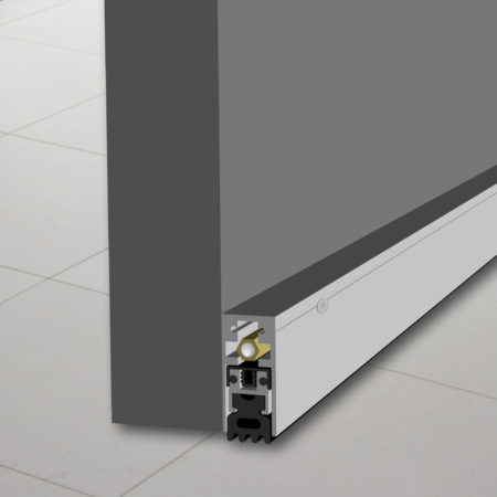 EA - Electrical Actuator option includes a motorized part that gets mounted inside the wall behind the door frame and has a solenoid that penetrates through the frame and depresses the actuator of the automatic door bottom