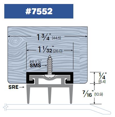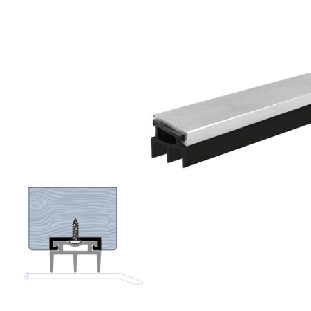 78" Length Door Shoe with Dark Brown Thermoplastic Insert, Size: 1-3/16"W x 11/16"H, Material: Mill Finish Aluminum, Screw Mount