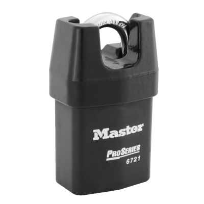 Master Lock 6721 KA — Master Lock Company Padlock ProSeries Shrouded Laminated Steel Rekeyable Key-in-Knob Padlock 2 1/8" Wide 3/4" Tall Shackle Keyed Alike