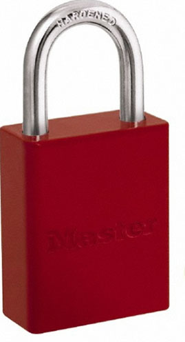 Master Lock 6835RED — Master Lock Company Padlock Red Powder Coated Aluminum Safety Padlock 1 1/2" Wide 1" Tall Shackle 5-Pin Cylinder Keyed Different