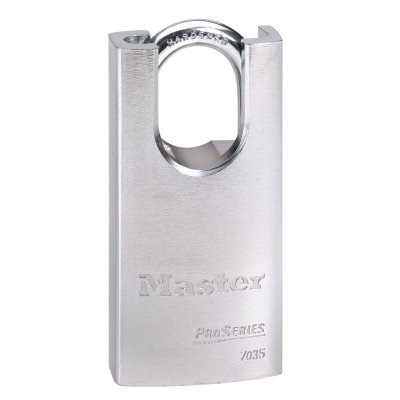 Master Lock 7035MK — Master Lock Company Padlock ProSeries Shrouded Solid Steel Rekeyable Pin Tumbler Padlock 1 9/16" Wide 1 1/16" Shackle 5-Pin Cylinder Master Keyed
