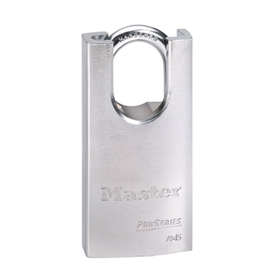 Master Lock 7045WO — Master Lock Company Padlock ProSeries Shrouded Solid Steel Rekeyable Pin Tumbler Padlock 1 3/4" Wide 1 3/16" Tall Shackle Without Cylinder