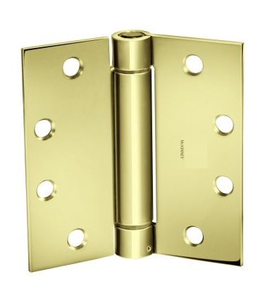 McKinney 1502-4-1-2X4-1-2-3 4-1/2" x 4-1/2" Single Acting Spring Hinge, Standard Weight, Full Mortise, 3-Knuckle - Bright Brass Finish