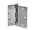 Hinge types include full mortise, half mortise, full surface, and half surface hinges in brass, steel, and stainless steel. Specialty hinges include interim hinges designed for a door and frame prepared for different size hinges and pocket pivot hinges which are designed to give a flush appearance to the corridor when the door is open and recessed into a pocket in the corridor wall.