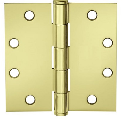 McKinney T2714-4X4-3 Full Mortise, 5-Knuckle, Standard Weight, 4" x 4" Square Corner Hinge - Bright Brass Finish