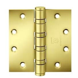 McKinney T4A33864123BT 4-1/2" x 4-1/2" Non Ferrous Heavy Weight 5-Knuckle Ball Bearing Hinge with Ball Tip - Bright Brass Finish
