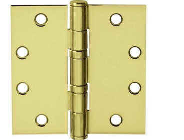 4-1/2" x 4-1/2" Non Ferrous Standard Weight 5 Knuckle Ball Bearing Hinge - Bright Brass Finish