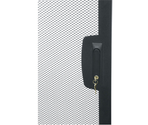 Offered in 64% open area perf configurations. Beveled corners provide a stylish modern appearance while hinging either left or right. Black textured powder coat finish. Includes keylock.