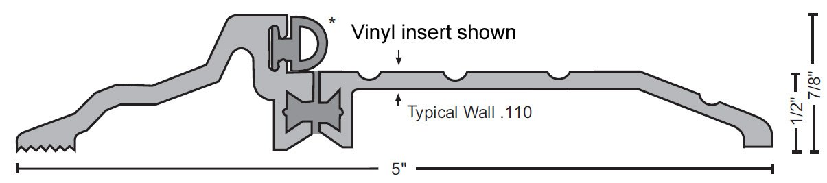 Thermal Break thresholds feature a rigid PVC spline creating a separation to prevent the transfer of outside temperature and frost through the threshold