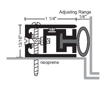 Adjustable Perimeter Seal, Length: 84", Dark Bronze Anodized Aluminum Holder with Black Neoprene insert, Adjusting Range: 1/4"