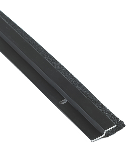 48" commercial threshold stop strips in mill finish aluminum with black thermo seal insert.