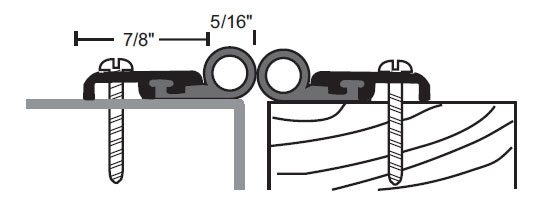 • Fire-rated Astragal Seals cannot replace any astragal required on the door by the door manufacturer to maintain its fire label. IBC, NFPA 80, NFPA 105, and NFPA 252 require the gap at the meeteng edge between fire labeled doors must not exceed 1/8".