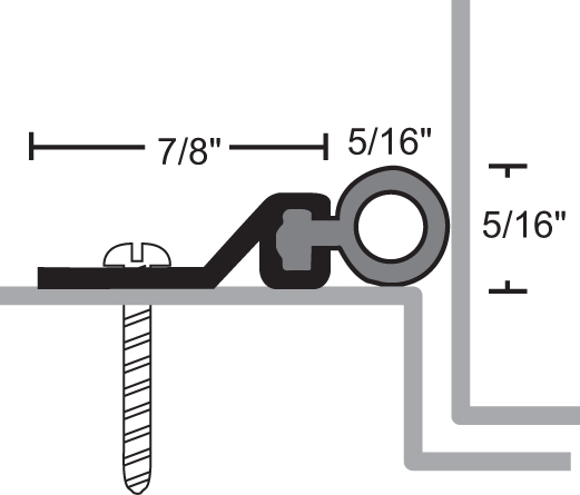 Perimeter Seal, Length: 36", Clear Anodized Finish Aluminum Holder with Gray Vinyl insert, 7/8" holder, 5/16" projected insert