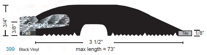 Carpet/Tile Divider, Material: Black Vinyl, Length: 36", Width: 4 1/2", Height: 3/4"