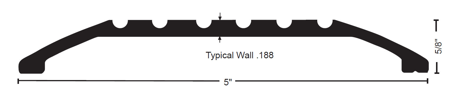 5" width by 1/4" rise