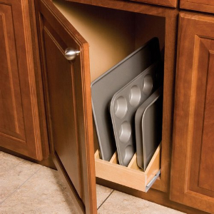 Provides practical space for those hard to store and hard to reach pans, trays or serving platters