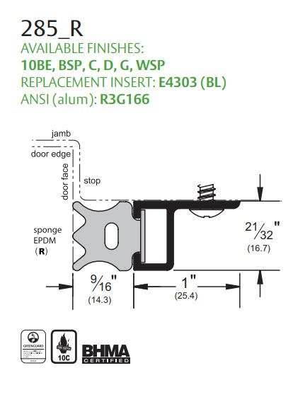 Pemko 285CR 96" Standard Perimeter Gasketing with Black Sponge Neoprene Insert - Clear Anodized Aluminum